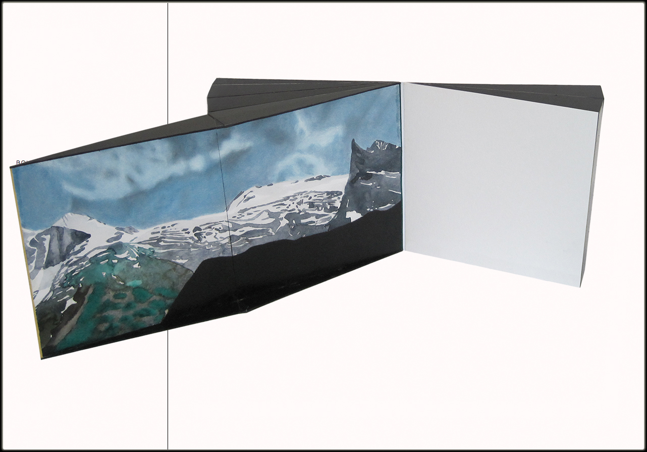 Knochen, Aquarell, Glasmehl, Pigment, Bitumenlack auf Papier, 6 Seiten, 26 x 26 x 24 cm, 2015